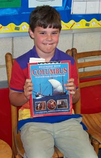 In October 1999 we studied Christipher Columbus with Megan Flaherty. The first project we did was an explorer book. . Each of us wrote our own fact about Christopher Columbus or other explorers. Next we did a time line on him . Mrs .T found a story that was kind of a song . Megan made a film projecter . We put the time line in the projecter and it was kinda like a real film strip. Then we showed her teacher. |