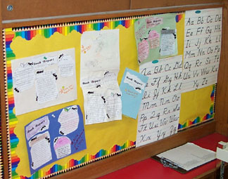 by Morgan Mrs. Terranova's class has always written with a lot of details when they write stories. The "Big Mac Extra" is good to know. We learned it makes you remember to write with a lot of details in the middle...'the meat'. We always have to have a Beginning, Middle and an End in our stories. When we want to publish a story we have to do five things: 1. brainstorm, 2. write a draft "sloppy copy", 3. edit with a friend or teacher, 4. do a "neat sheet", the one you write with really neat handwriting, and then 5. you illustrate, draw the pictures . |