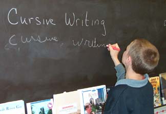 Did Mrs. Terranova's Class do Cursive? by Ryan and Carl At the beginning of the school year we learned to write cursive. First we did lower case letters, then we did upper case letters. Some of the first lower case were l, h, k, t, i, u, and some of the first upper case letters were a, c, e, q, h, k, and n. |